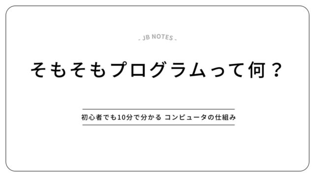 プログラミング基礎知識 そもそもプログラムって何? 〜初心者でも10分で分かる基礎〜 2025年11月25日 jb_admin_1204 https://www.jb-notes.com/wp-content/uploads/2025/11/9470996c54a095e7fec89cff59545630.png JB Notes