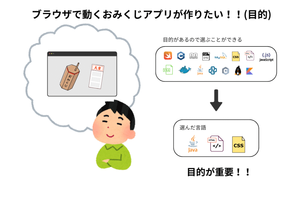 この「目的」が決まれば、言語を選ぶことがグッと楽になります。