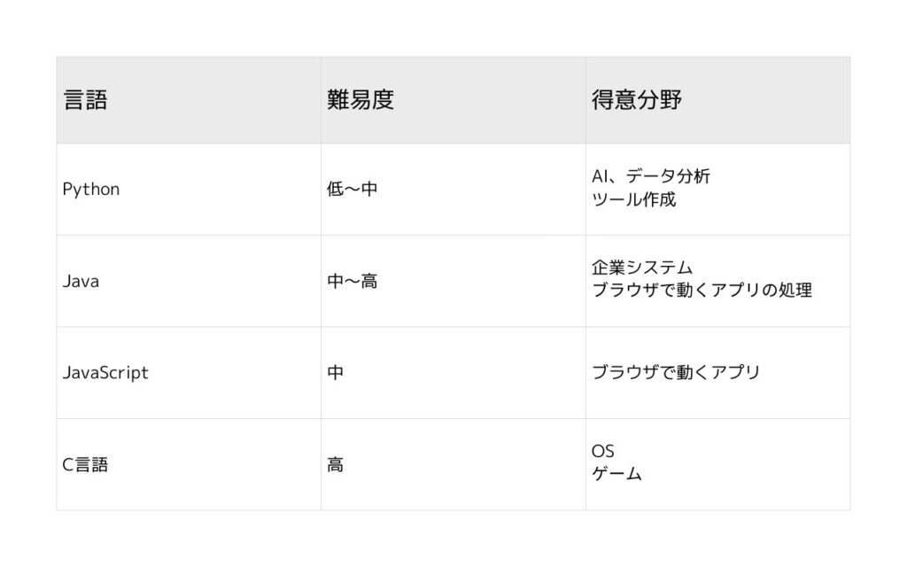 ✅ 言語がたくさんあるのは、目的によって得意分野が違うから