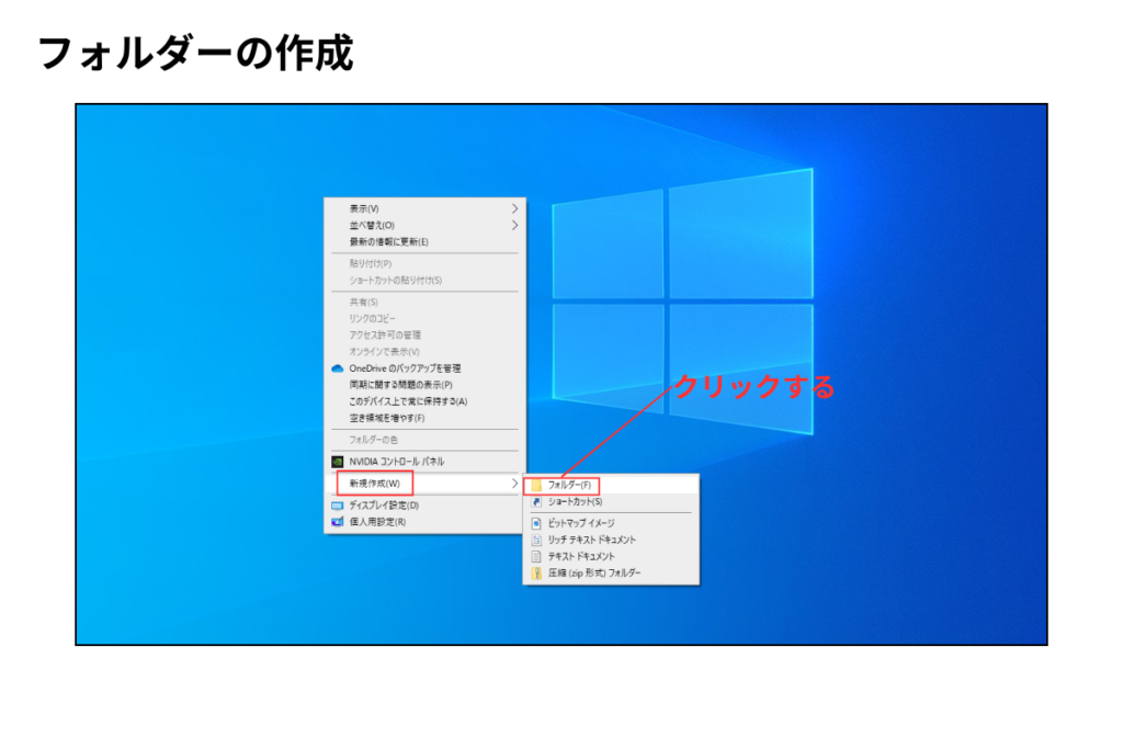 - 「新規」 → 「フォルダ」をクリック