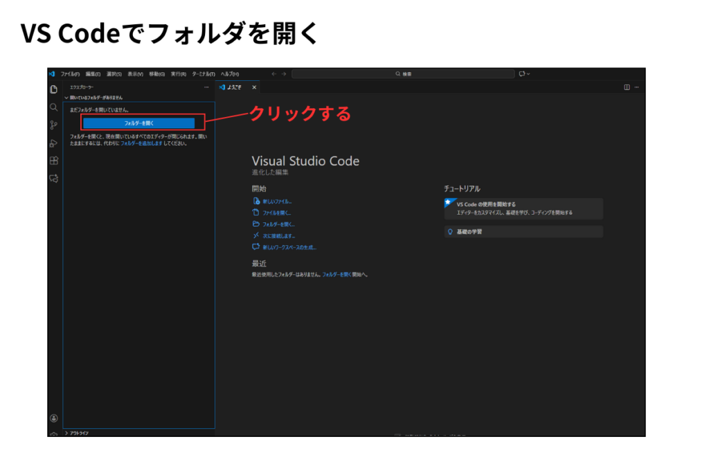 ステップ2: フォルダをVS Codeで開く