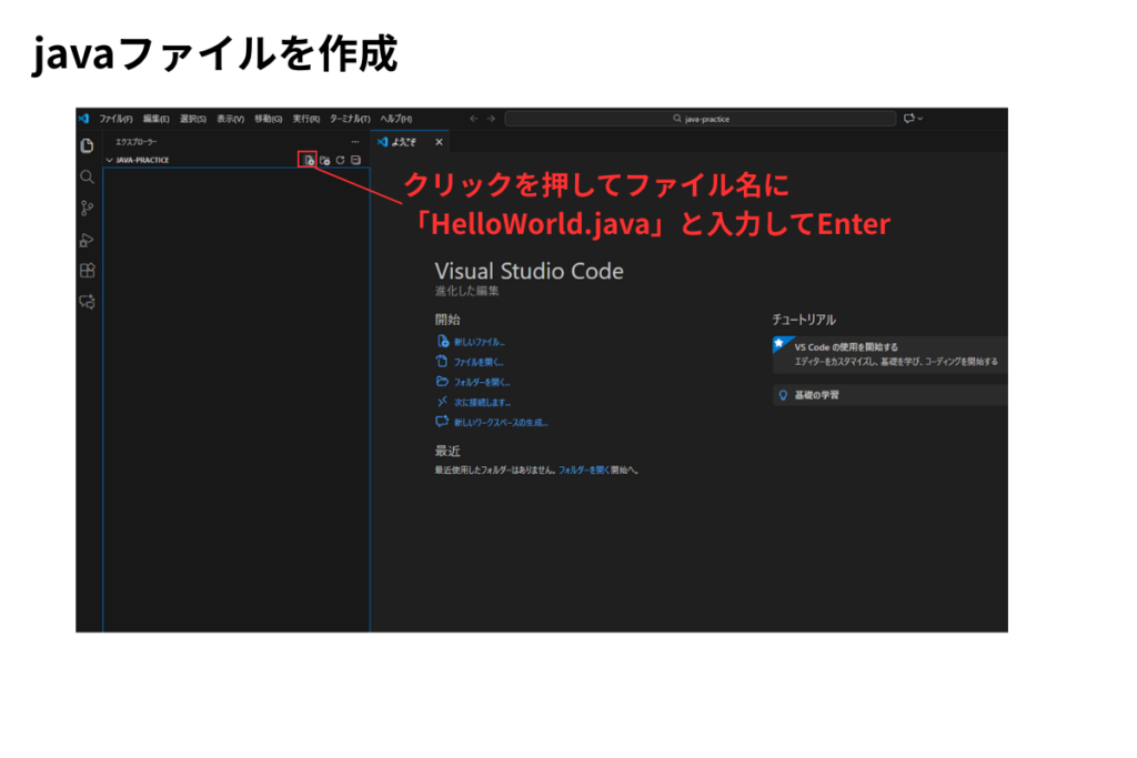 - VS Codeの左サイドバーで「新しいファイル」アイコンをクリック
